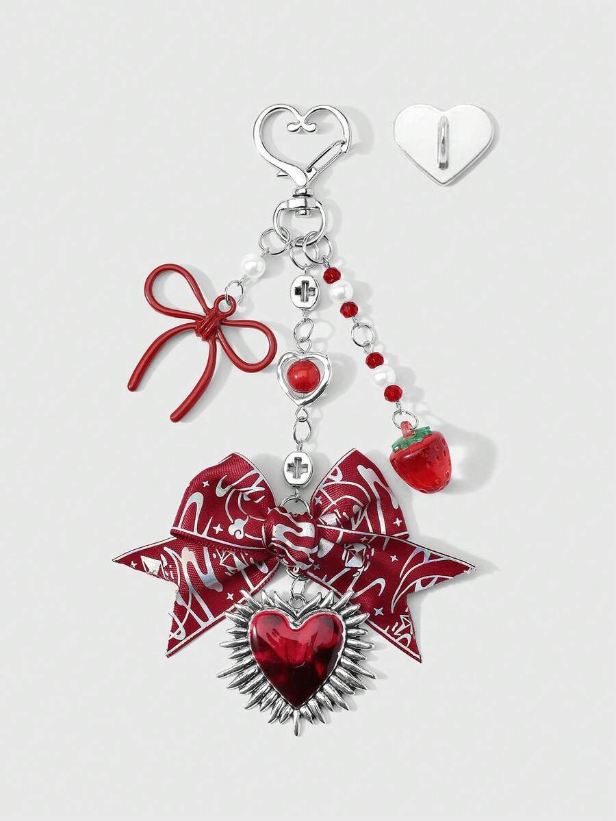 Kawaii 1 Nuevo accesorio de moda retro de estilo Y2K, Spice Girl, personalizado con cadena de plata, cruz de imitación de cristal, imitación de perla, fresa, luna mágica, nube, barco, superficie lisa, lazo hueco plateado, gota de aceite, gótico, amor, colgante DIY para llavero, bolso, vaso de agua, teléfono móvil. Accesorio de amor fijo, adecuado para uso diario de niñas y mujeres, regalo para vacaciones.