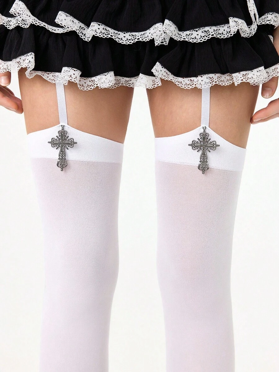 Grunge Punk 1 par de medias de suspensión con patrón oscuro gótico, medias sexys para mujer