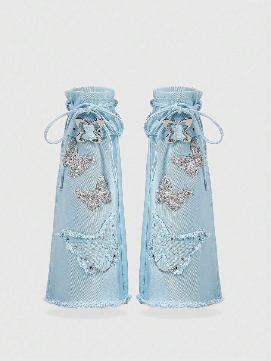 Fairycore 1 par de polainas vaqueras estilo retro Y2K del milenio con lazo, con campana y volantes, polainas antiguas de moda para adelgazar, con decoración de mariposa