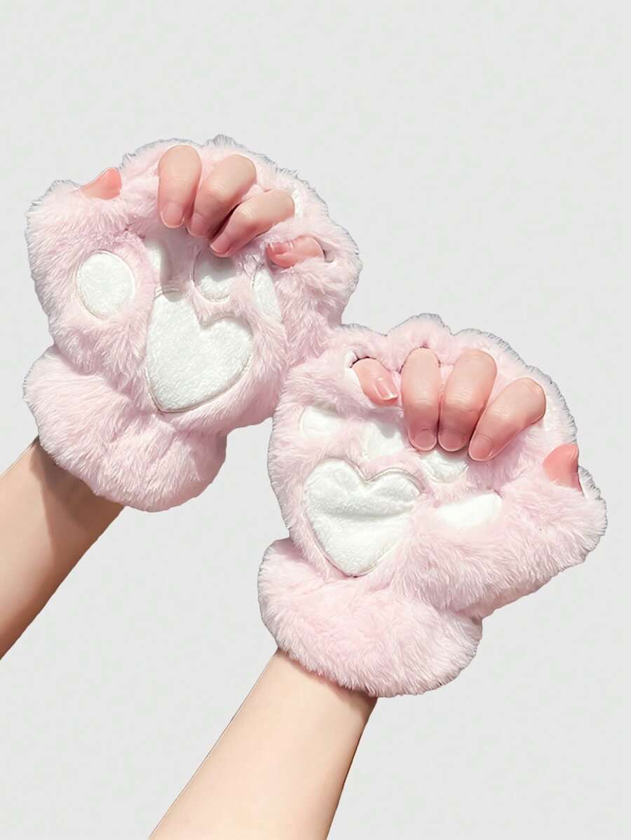 Kawaii 1 par de guantes sin dedos con diseño de pata de gato de peluche, aptos para uso diario