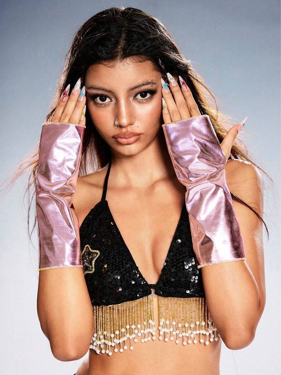Goth 1 pieza de guantes punk de color rosa, cubierta delgada para el brazo en primavera y otoño, adecuada para el escenario y festivales de música