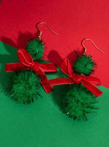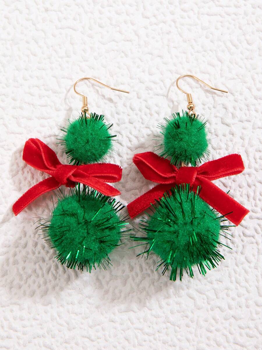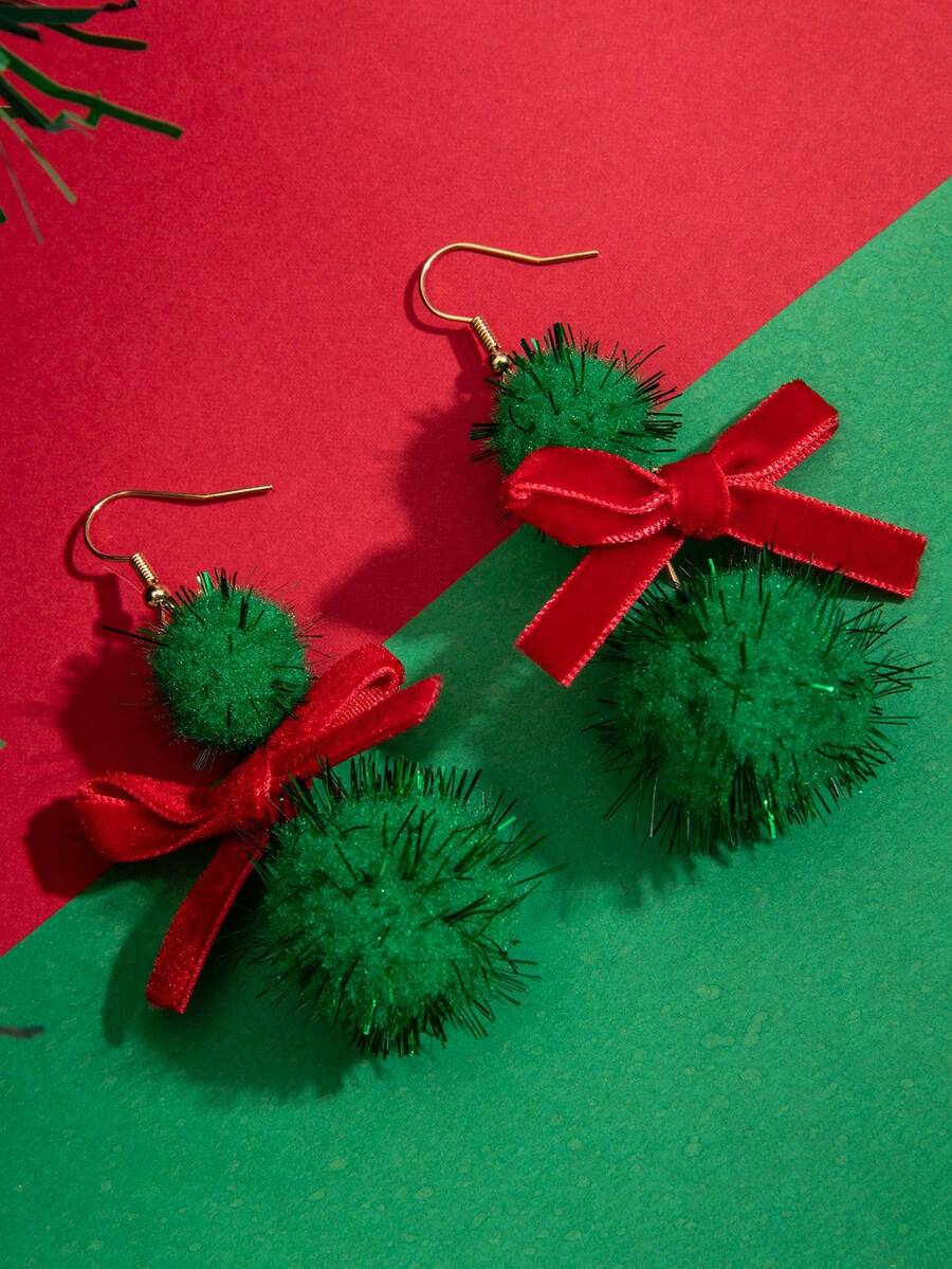 1 Par De Aretes Colgantes Con Bola De Piel De Temática Navideña En Color Rojo Y Verde, Regalo Para Mujeres