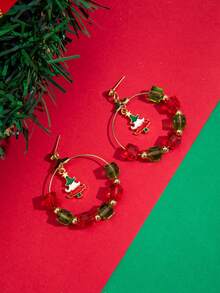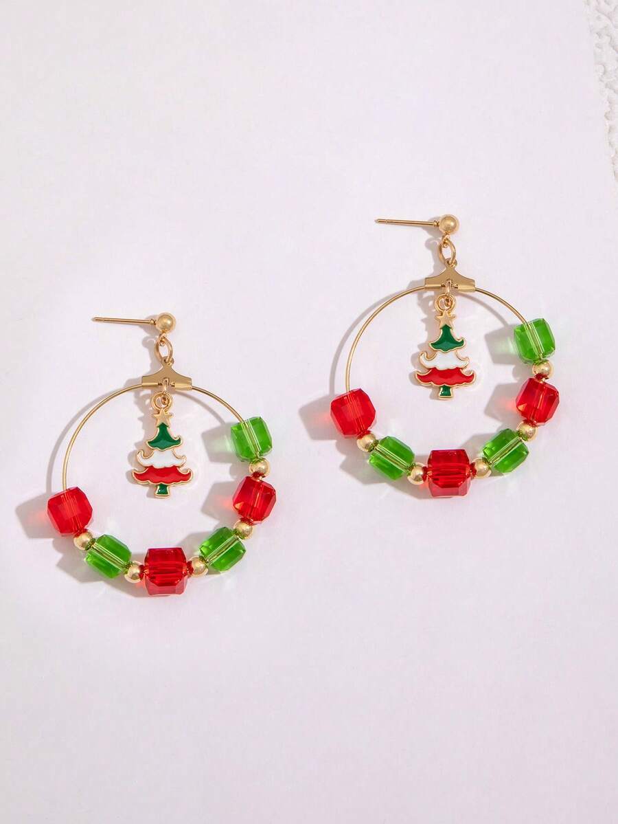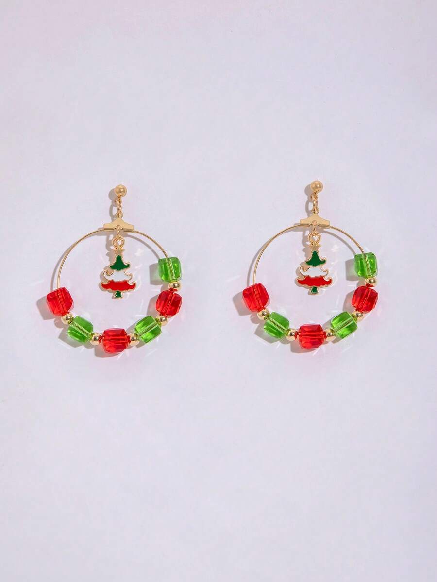 1 par árbol de Navidad en forma de de aleación colgante Pendientes con rojo & verde de cuadros cuenta con cuenta para mujeres - Navidad regalo ( color levemente a Aceite en lotes )
