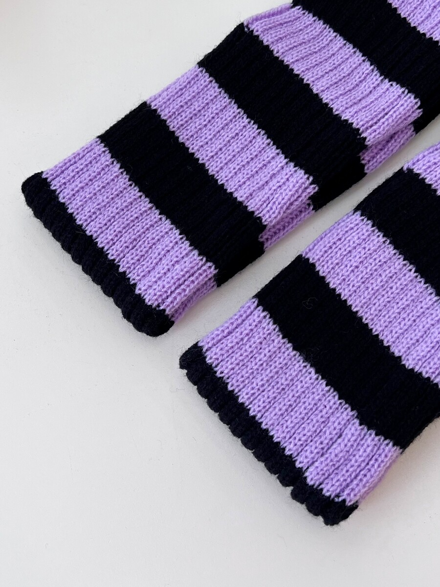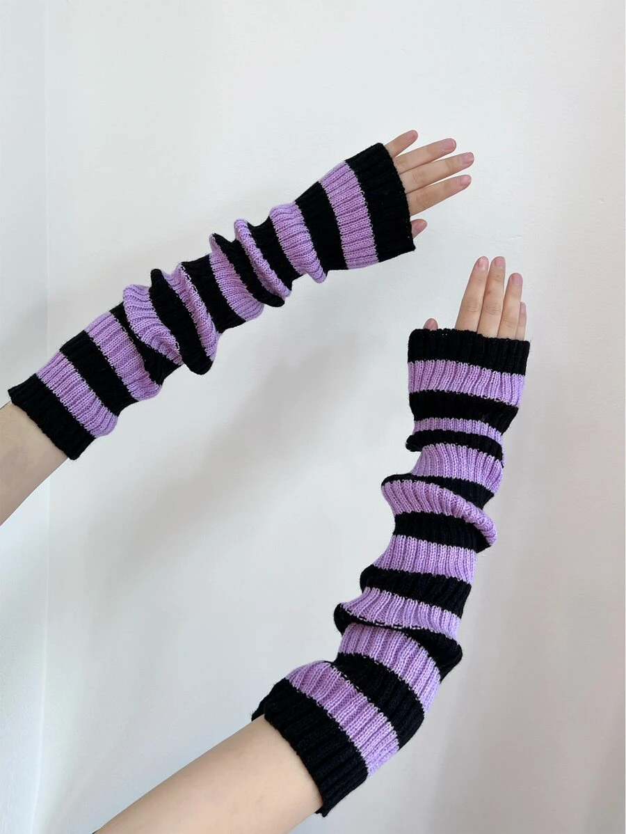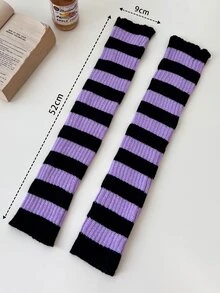 1 par de calentadores de brazos largos de punto a rayas con diseño color block verde y blanco, perfectos para atuendos festivos