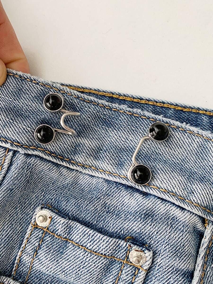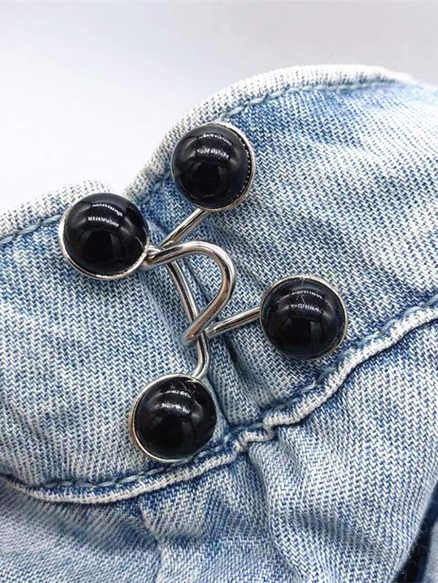 1 hebilla de ajuste de cintura desmontable con decoración de cuentas, hebilla de cintura de acero inoxidable, para pantalones