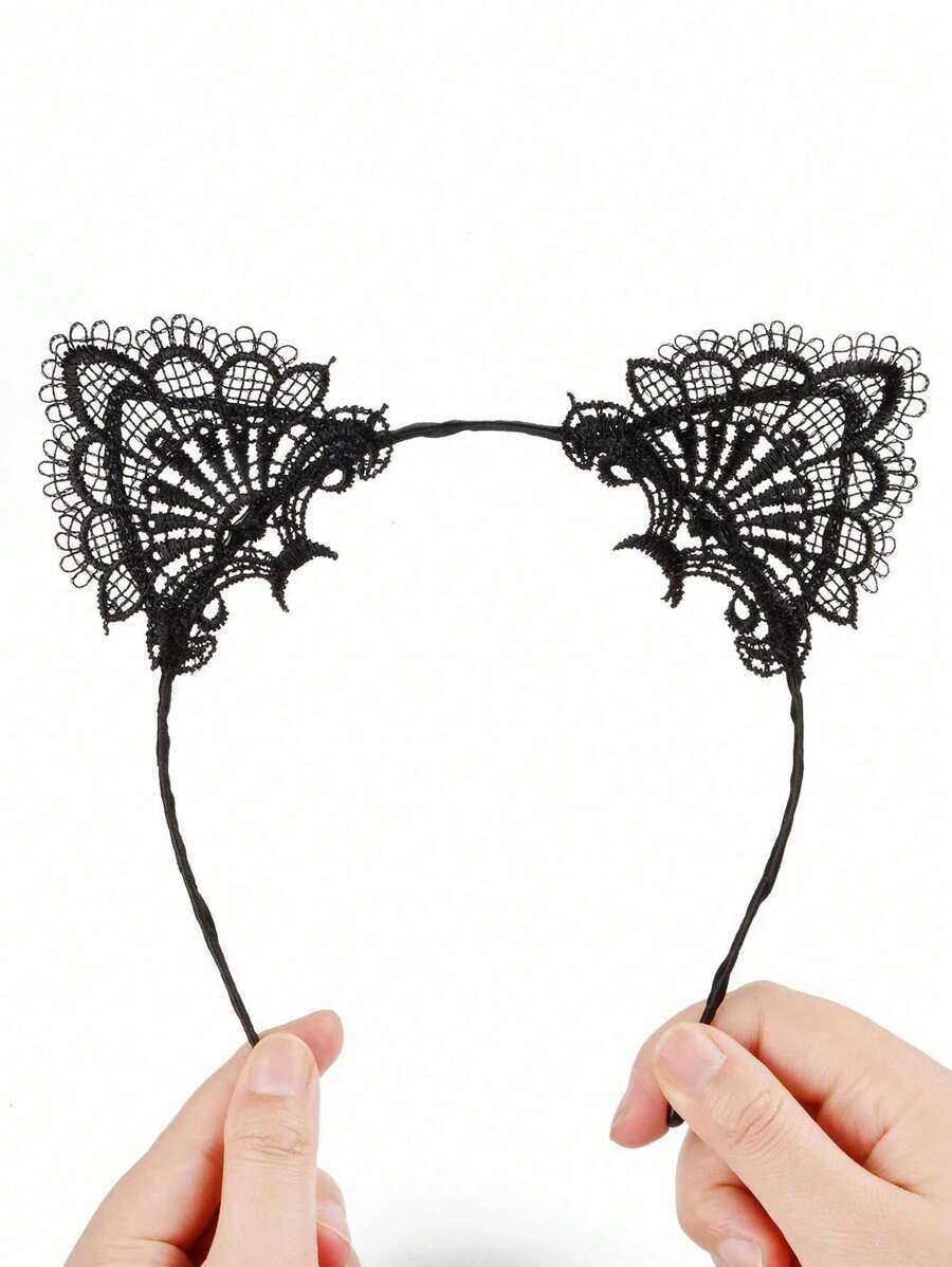 1 pieza diadema con orejas de gato de encaje negro, ideal para fiesta de Halloween o Navidad