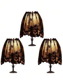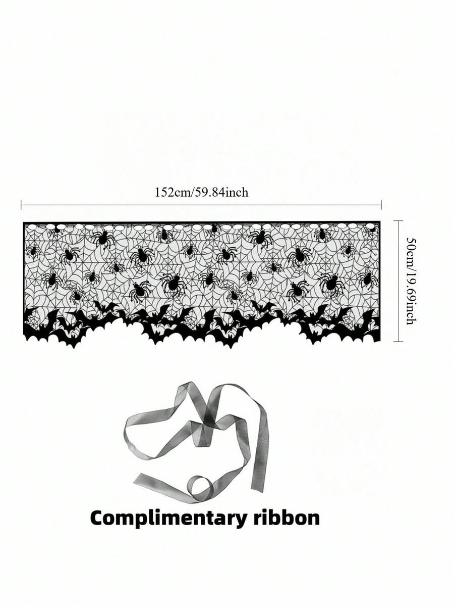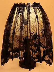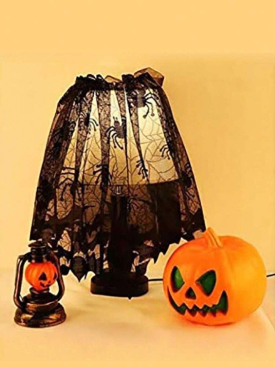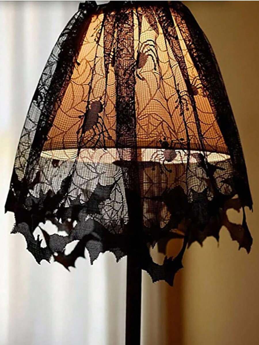Goth 1 pieza Pantalla de lámpara decorativa de encaje negro, Mantel de mesa de Halloween, Toalla de chimenea, Bandera de mesa, Cortina, Adorno personalizado de pantalla de lámpara, Camino de mesa decorativo, Cortina de puerta de bruja con tela de araña de encaje negro, Decoración para el hogar