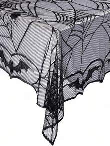 Goth 1 pieza Mantel de encaje negro, mantel estilo gótico, decoración de fiesta, mantel de Halloween - Mantel de encaje negro de Halloween con murciélago - Cubierta de mesa con tela de araña de festival de fantasmas para decoración familiar y de fiestas, decoración del hogar