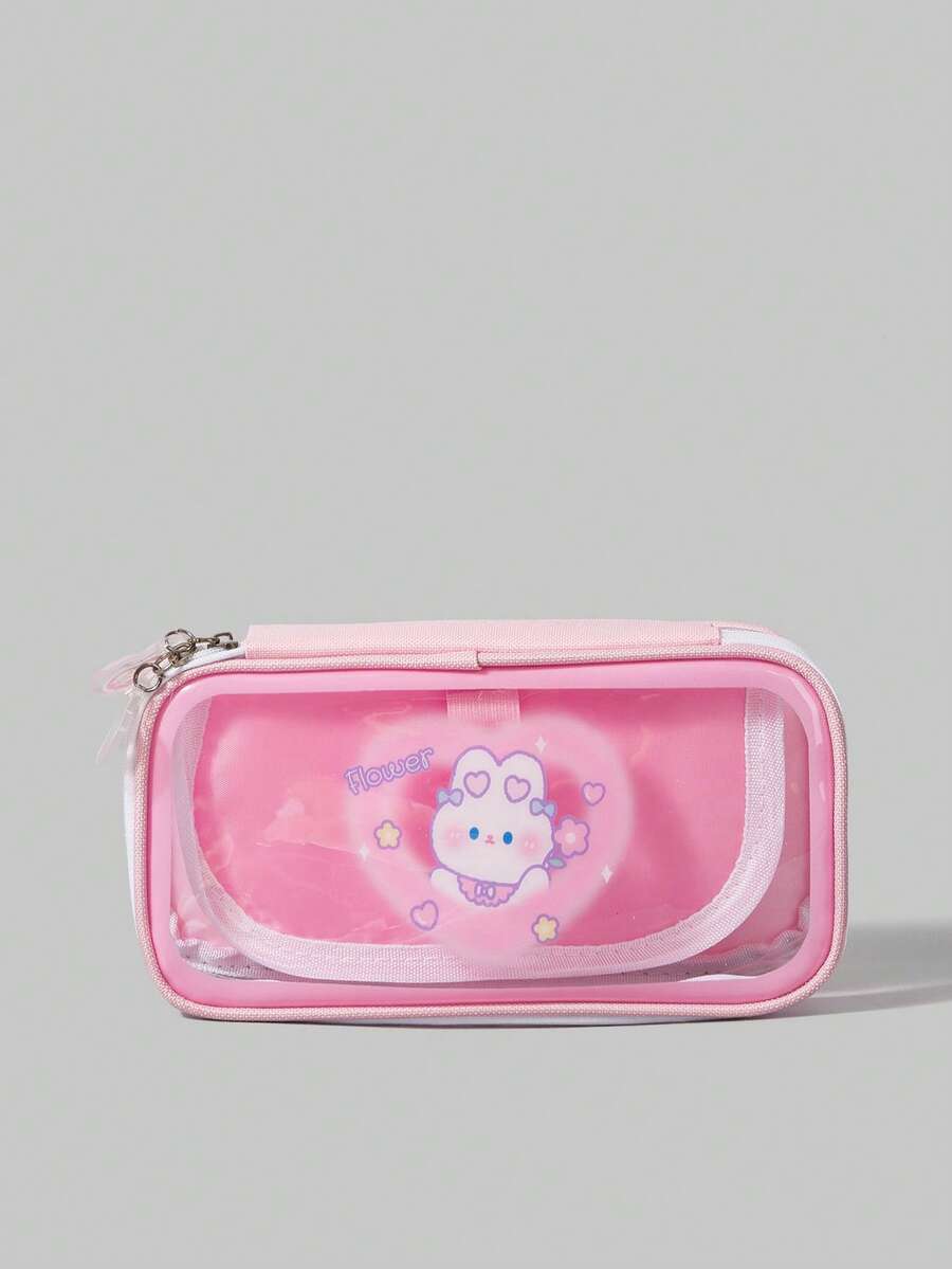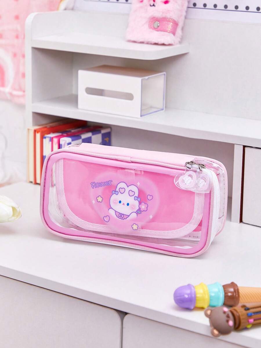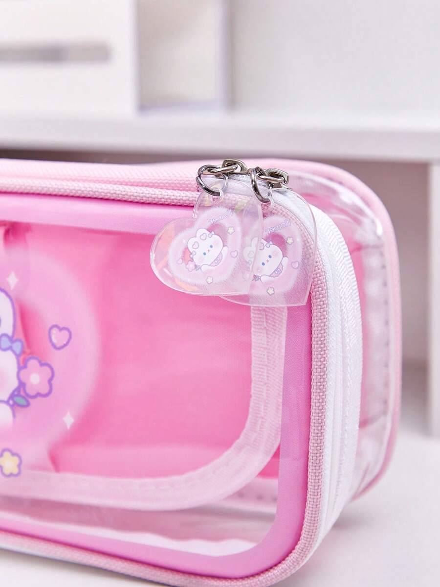 Kawaii 1 pieza con dibujos animados con patrón de conejo Estuche de lápiz , dulce Organizador de papelería de oficina para la escuela de adolescentes