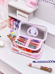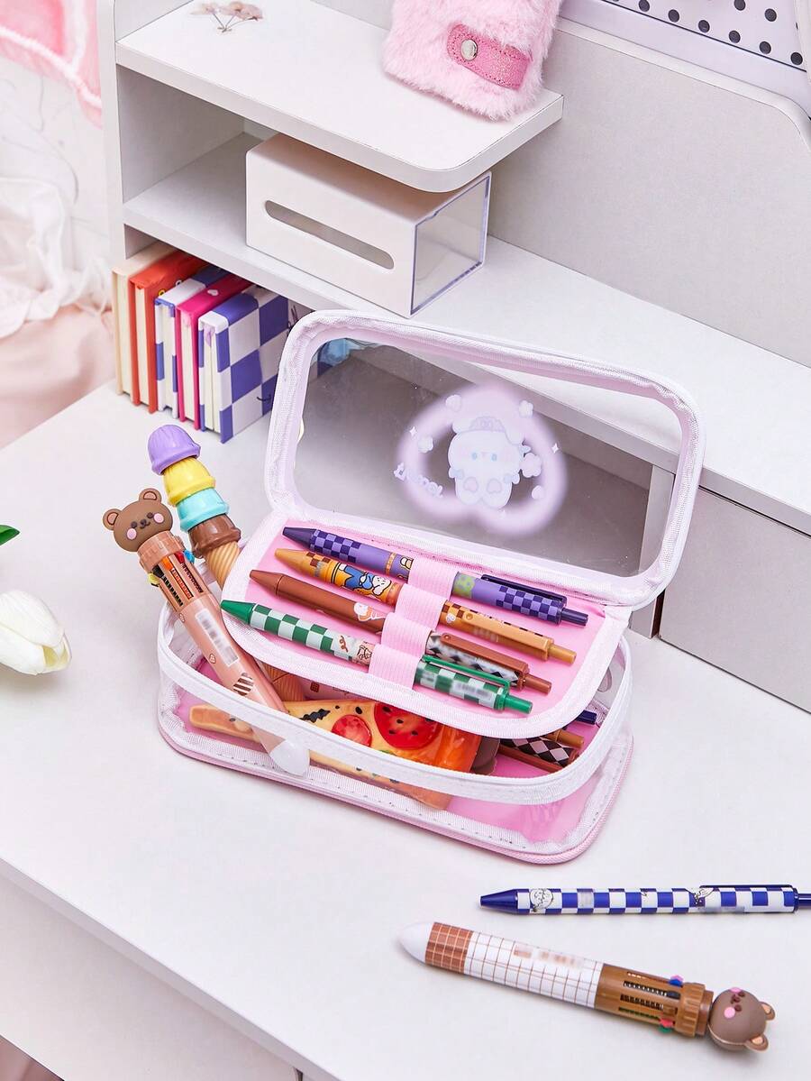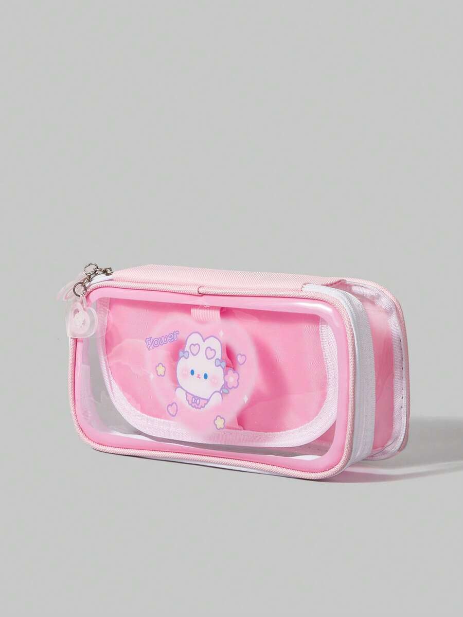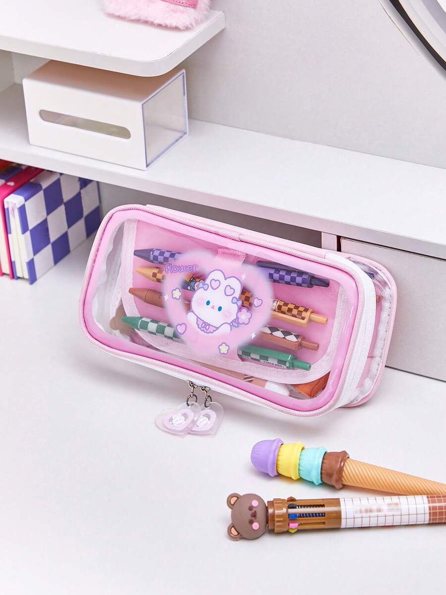 Kawaii 1 pieza con dibujos animados con patrón de conejo Estuche de lápiz , dulce Organizador de papelería de oficina para la escuela de adolescentes