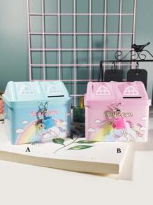 1 pieza Caja de dinero con diseño de unicornio de dibujos animados y cerradura, caja de monedas con forma de casa linda, mejor opción para adolescentes y familia