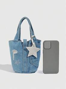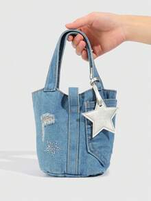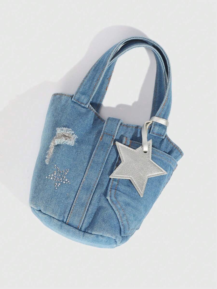 Grunge Punk 1 pieza Accesorio de bolso pequeño de mano estilo casual y minimalista con decoración de estrella de strass, colgante de estrella de PU para salir