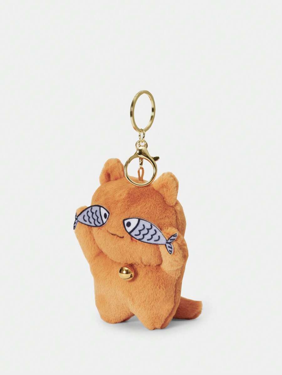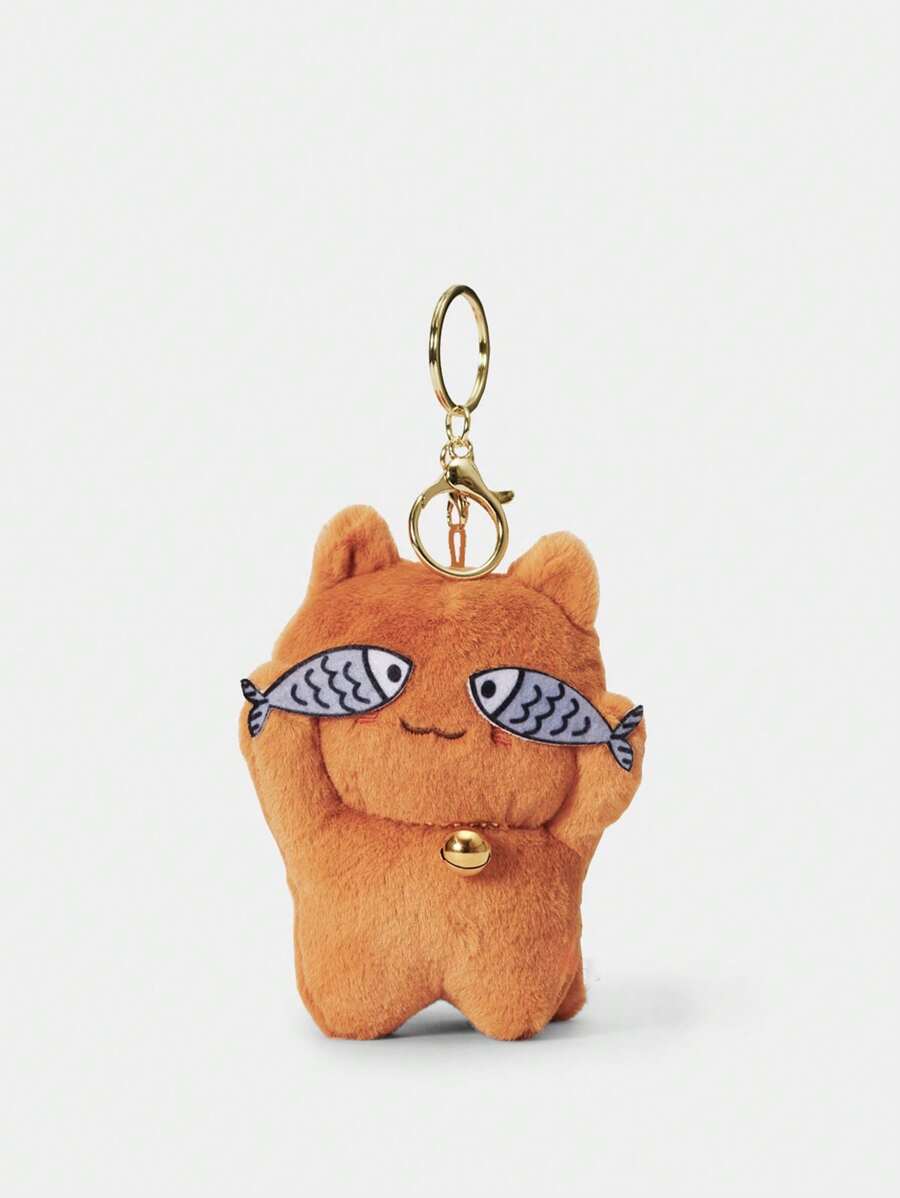 Kawaii 1 pieza Llavero de peluche de gato de pez tímido lindo