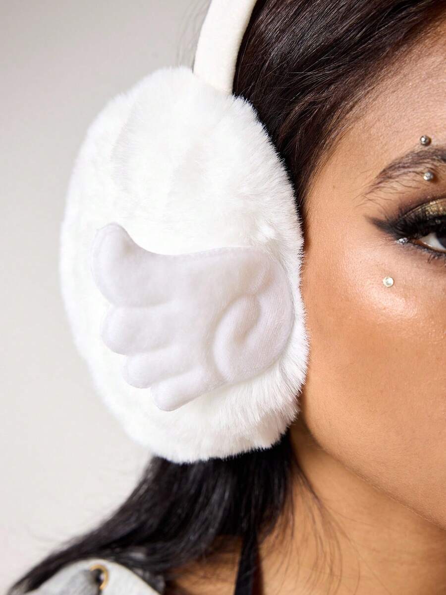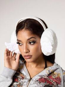 Anime 1 pieza Orejeras de peluche de unicolor y lindo, orejeras esponjosas y gruesas de estilo lolita en color blanco, orejeras plegables para mantener calientes los oídos en invierno