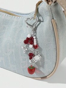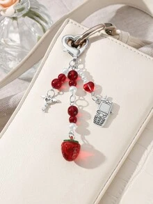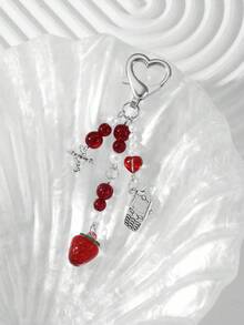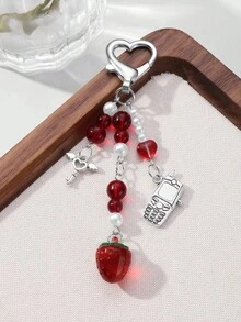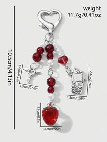 Kawaii 1 pieza Elegante, Elegante, Versátil, Minimalista, Perla de alta gama, Cristal rojo de imitación, Llavero con cuentas redondas de resina en forma de fresa mini, Adecuado para mujeres, Uso diario, Regalo de vacaciones