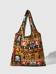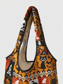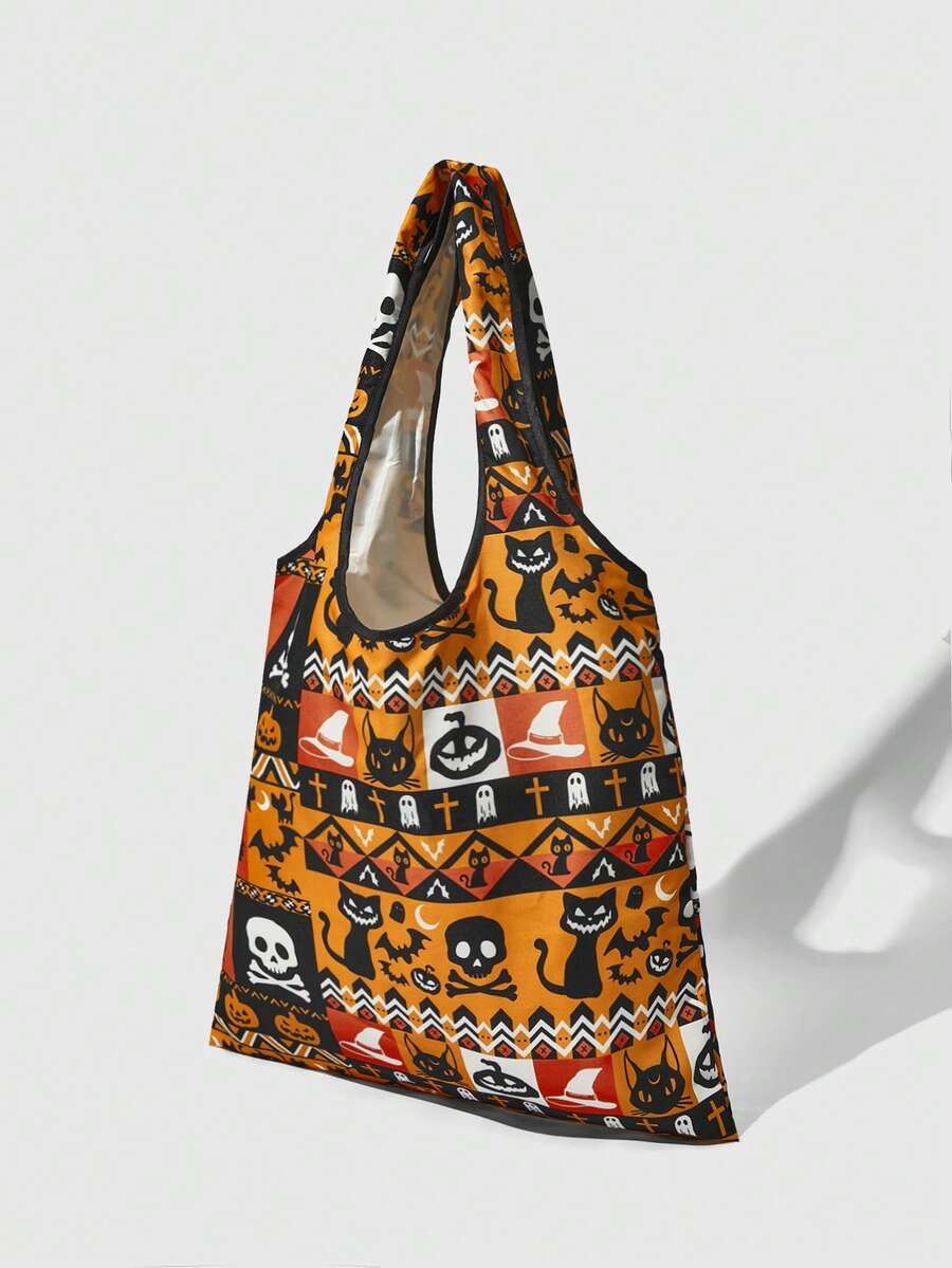 Kawaii 1 pieza Bolsa de mano plegable con diseño de esqueleto de gato negro para Halloween, para mujeres, bolsas de Halloween, perfectas para fiestas elegantes, moda de Halloween y moda gótica