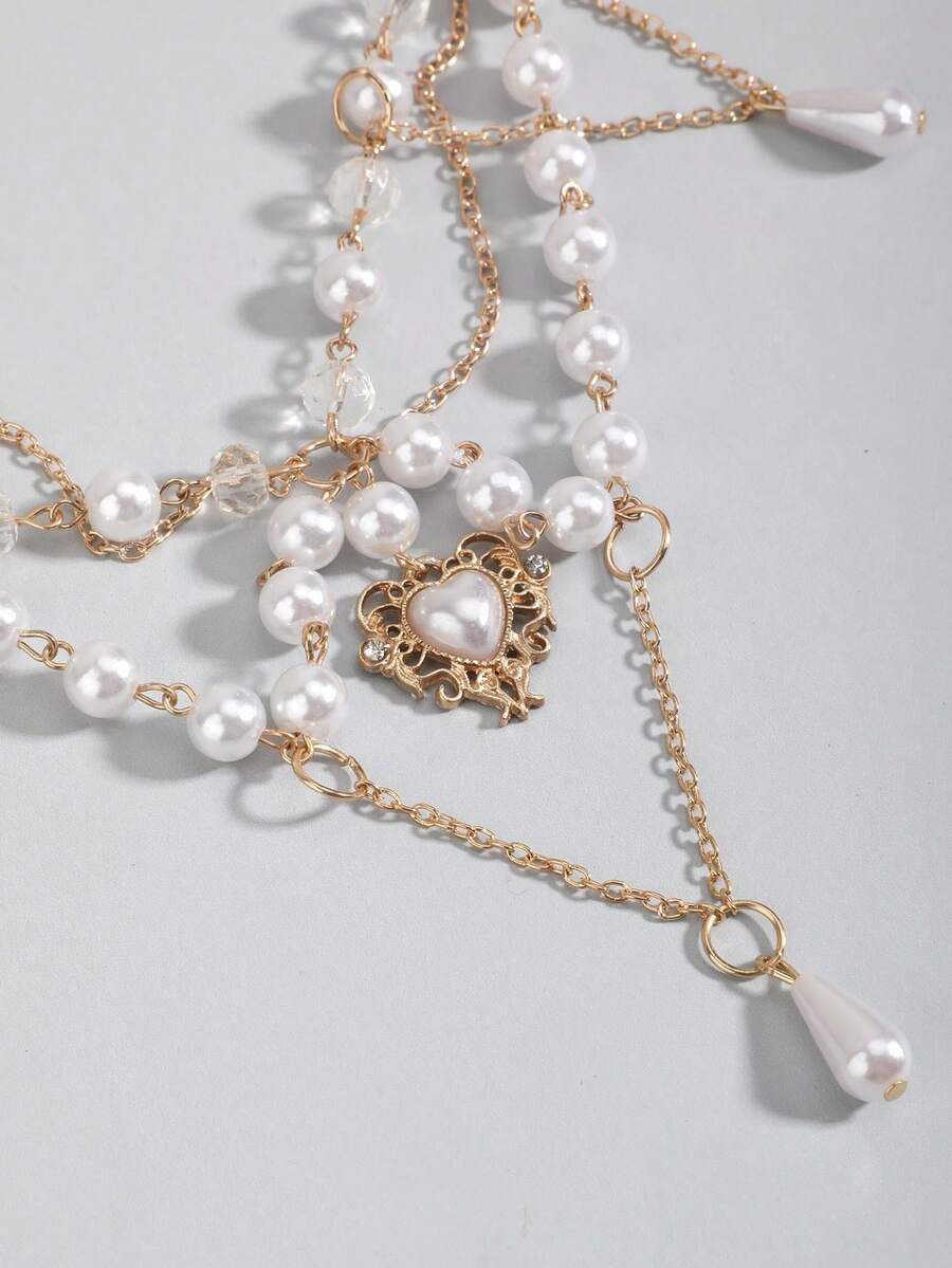 Goth 1 pieza Collar con dije de cruz decorado con cristales de imitación y perlas falsas de aleación de zinc glamoroso para mujeres para decoración diaria