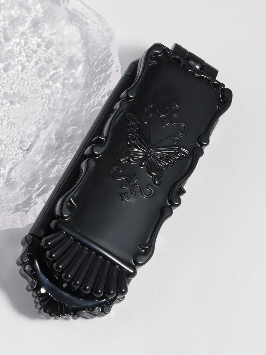 Kawaii 1 pieza Peine plegable de estilo gótico con diseño de mariposa negra, adecuado como regalo festivo y para uso diario