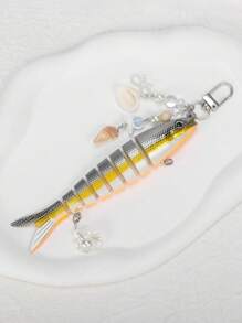 Kawaii 1 pieza Llavero de tema oceánico hecho a mano con conchas y peces, señuelo de pesca suave y realista, colgante de anzuelo de pesca de varios segmentos, estilo de vacaciones en la playa