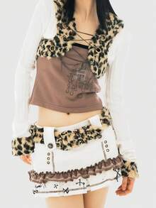 Goth 1 pieza Cinturón de textura de leopardo de piel sintética color caqui Y2K Babe, cinturón de cintura de estilo minimalista versátil y salvaje para mujeres, adecuado para fiestas, citas, viajes, Halloween, Navidad
