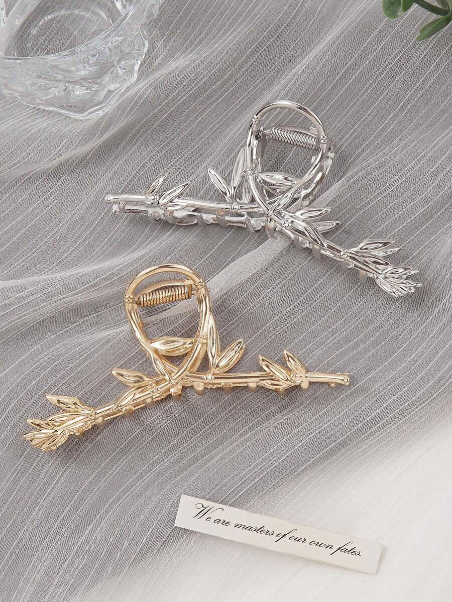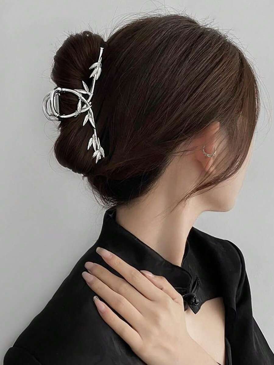 1 pieza Clip de pelo grande con forma de hoja de bambú metálico con diseño de estilo chino elegante para mujeres, clip de pelo para coleta o moño, accesorios para el cabello, clips de pelo, pinza para el cabello, sujetador de pelo