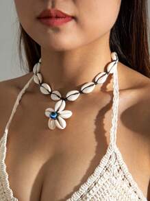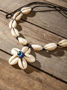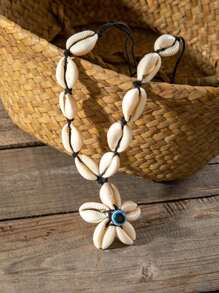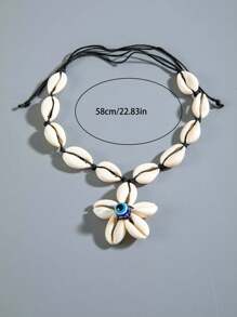 1 pieza Collar colgante con ojo de diablo y flor de concha con estilo oceánico chic para mujeres, adecuado para la playa, fiestas y vacaciones