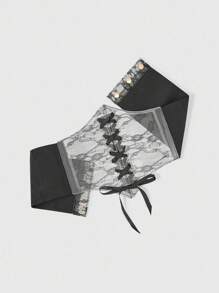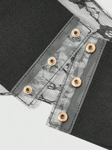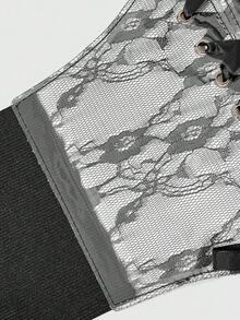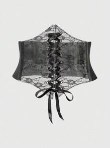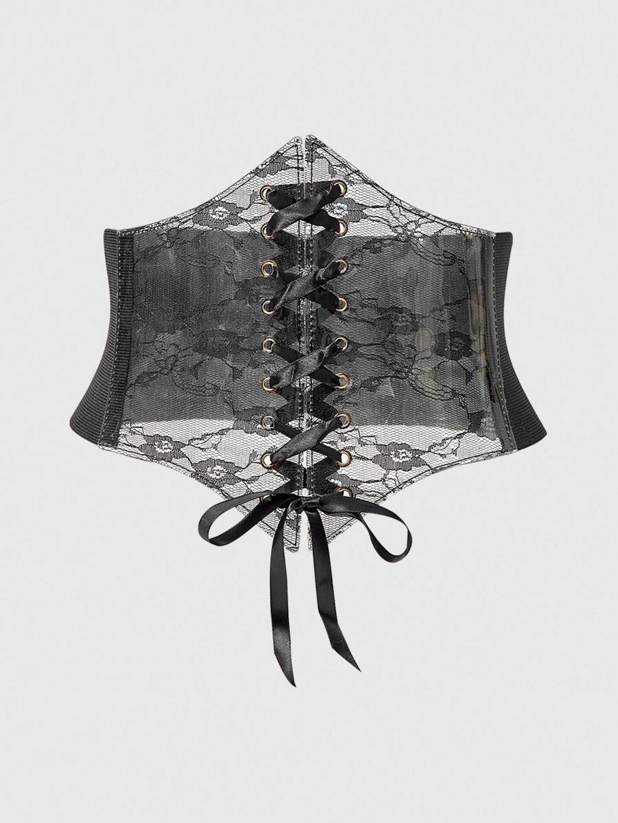 Goth 1 pieza Vestido transparente de PVC negro con decoración de encaje negro para mujer, corbata de cintura Elastic, accesorio versátil para uso diario y Halloween