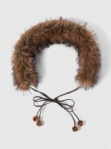 J-Fashion 1 pieza Accesorio de vestido/jeans con decoración de flecos y lazo en la cintura con estampado de leopardo y pelaje para mujer, versátil para uso diario