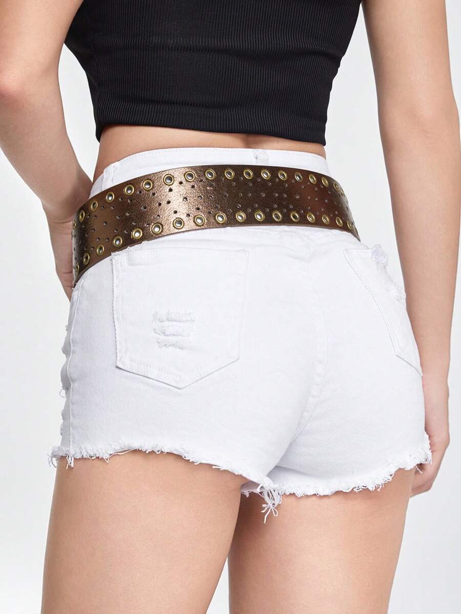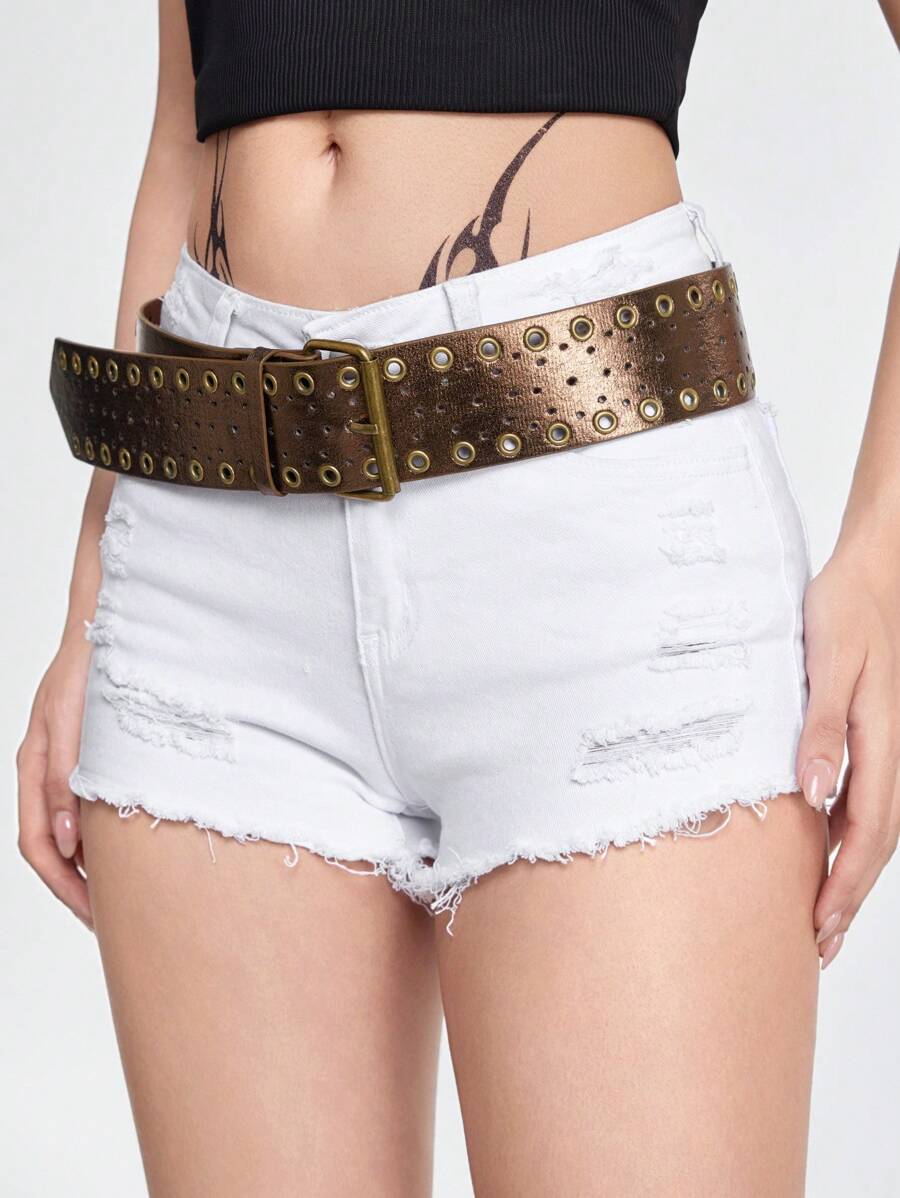 Goth 1 pieza Accesorio de vestir de estilo bohemio con ojo de tigre marrón perforado y cinturón ancho, adecuado para uso diario