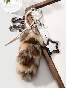 Grunge Punk 1 pieza Llavero y llavero de cola de animal de peluche marrón con estampado de leopardo de alta calidad en estilo retro Y2K, accesorio de moda adecuado para mujeres y niñas, gran idea de regalo