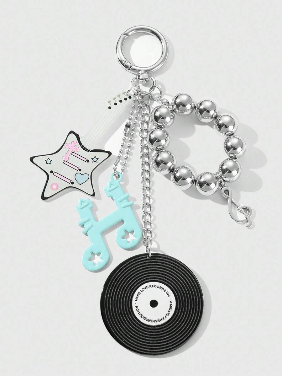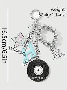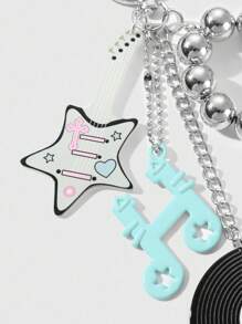 Kawaii 1 pieza Llavero/Accesorio para bolso con diseño de estrella hueca y nota musical de acrílico, estilo retro Y2K de alta gama, con cuentas de CCB plateadas, adecuado para mujeres, uso diario y regalo de vacaciones