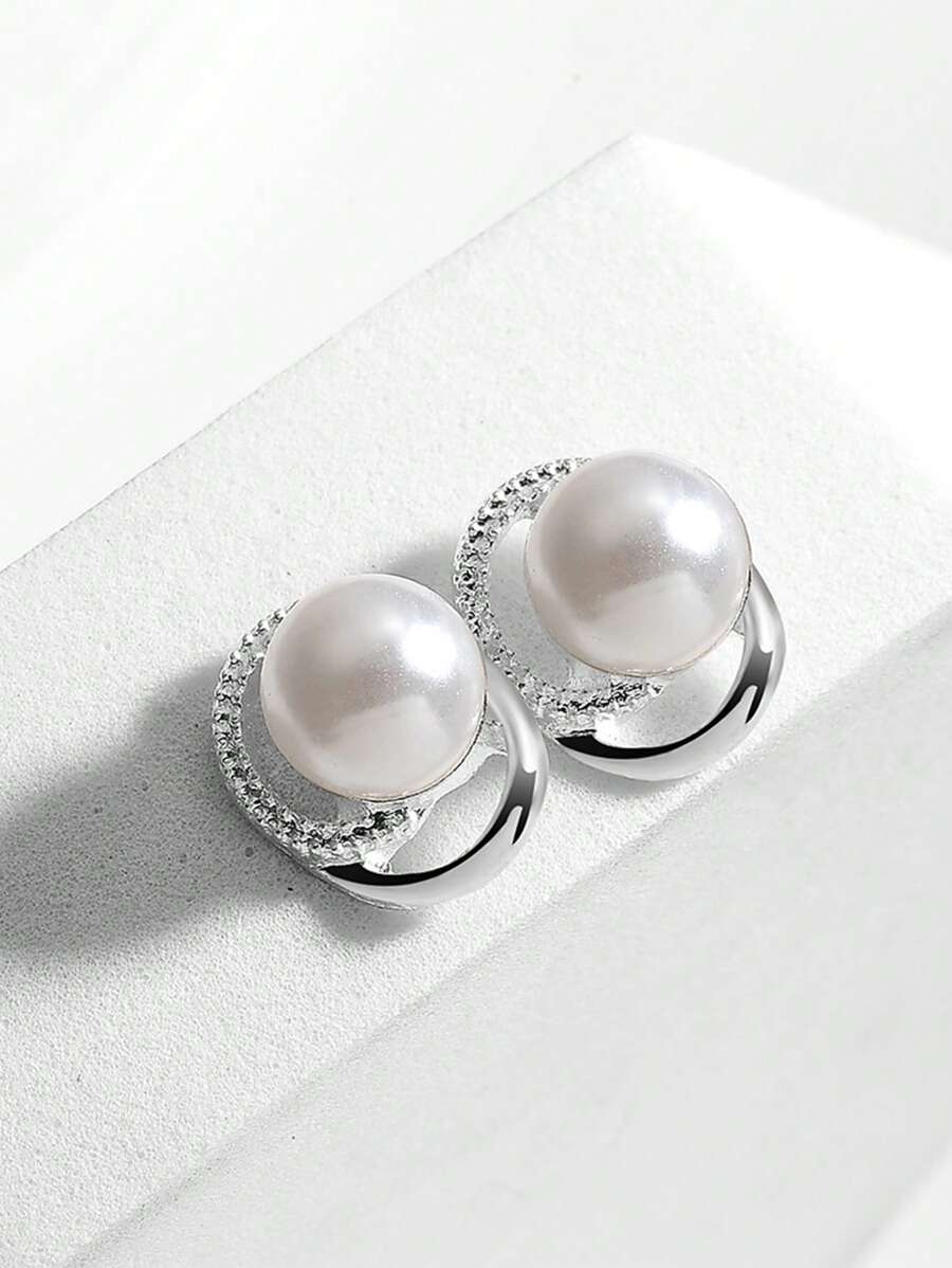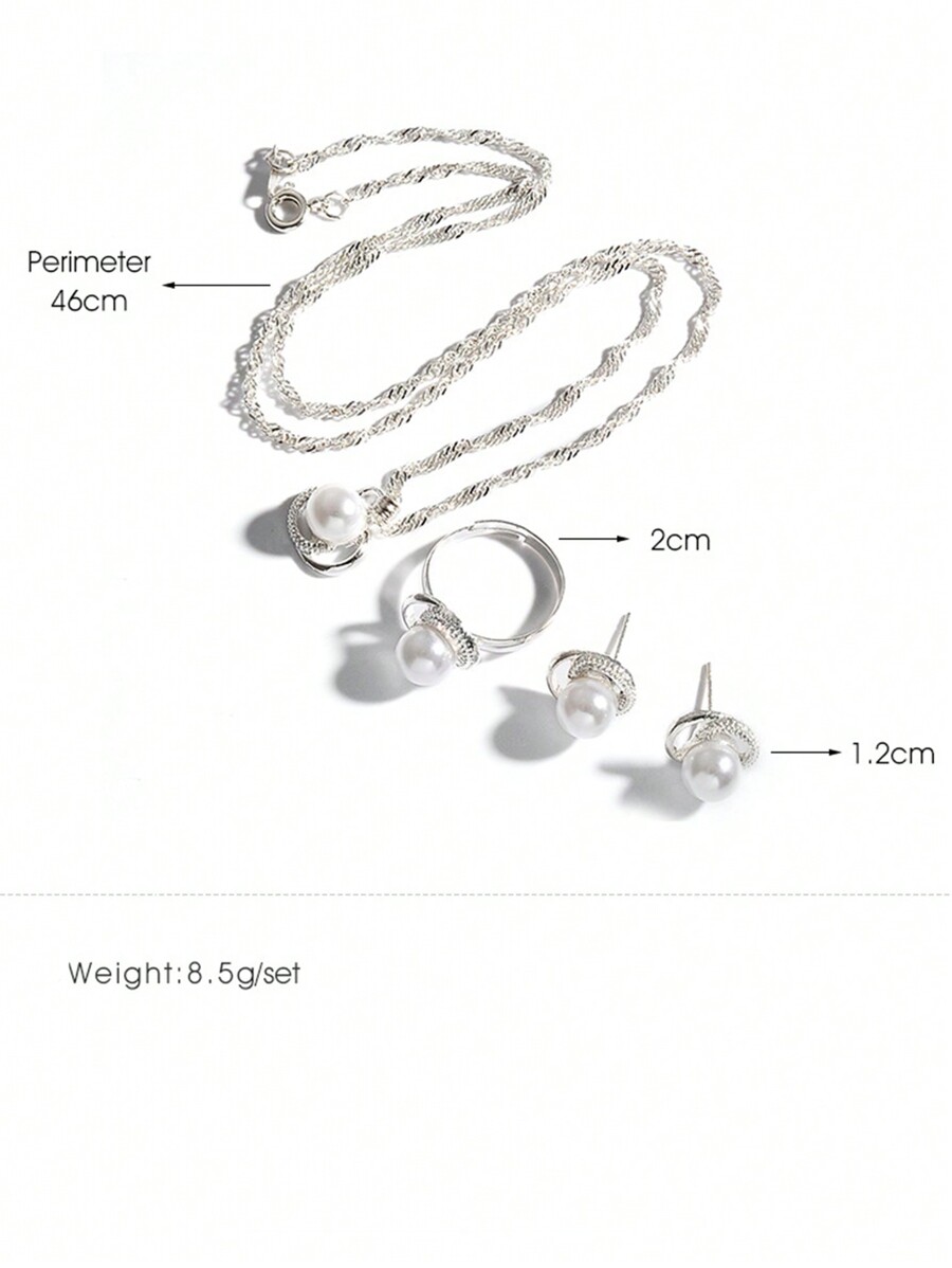 Conjunto de collar de cadena con colgante de perla, 1 par de aretes y 1 anillo