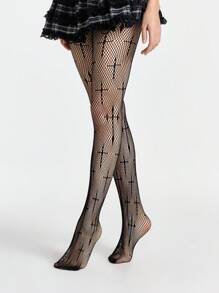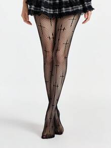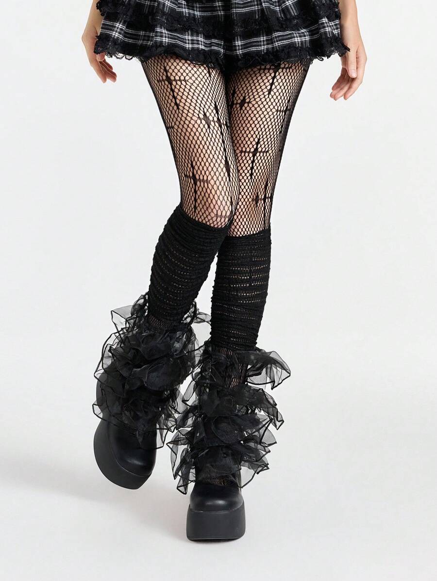 Grunge Punk Set de 2 pares de medias de red con diseño de cruz en estilo punk Y2K y calentadores de piernas con paneles de encaje negro, accesorios de estilo callejero del milenio para faldas, de delgado diseño para uso en verano, decoración de faldas única y de moda