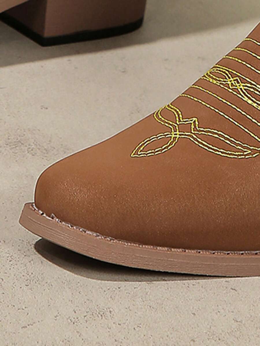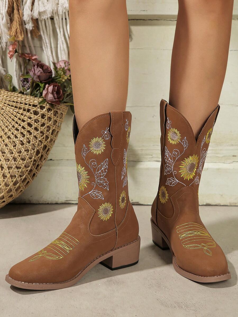 Fairycore 2024 Botas de moda al aire libre de mujer para primavera/otoño con detalles de girasol, patchwork y bordado, estilo occidental, botas vaqueras para mujeres en otoño