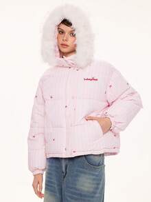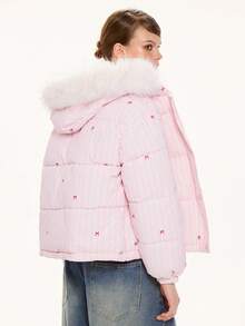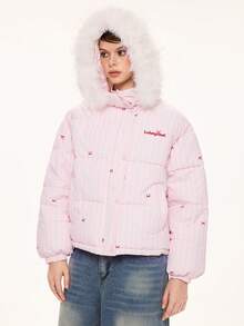 Abrigo acolchado con capucha y rayas grandes para mujer, estilo americano, cálido y versátil para el invierno