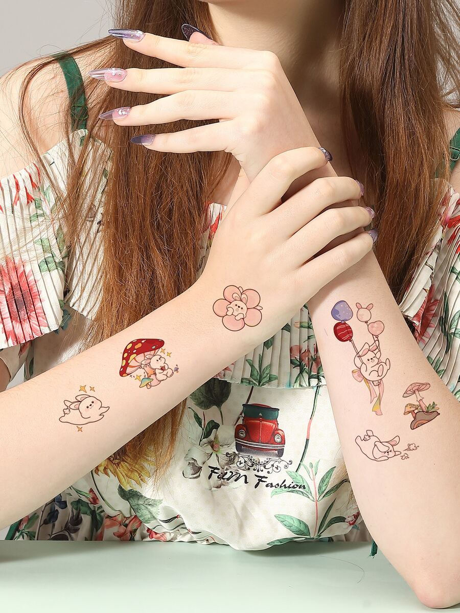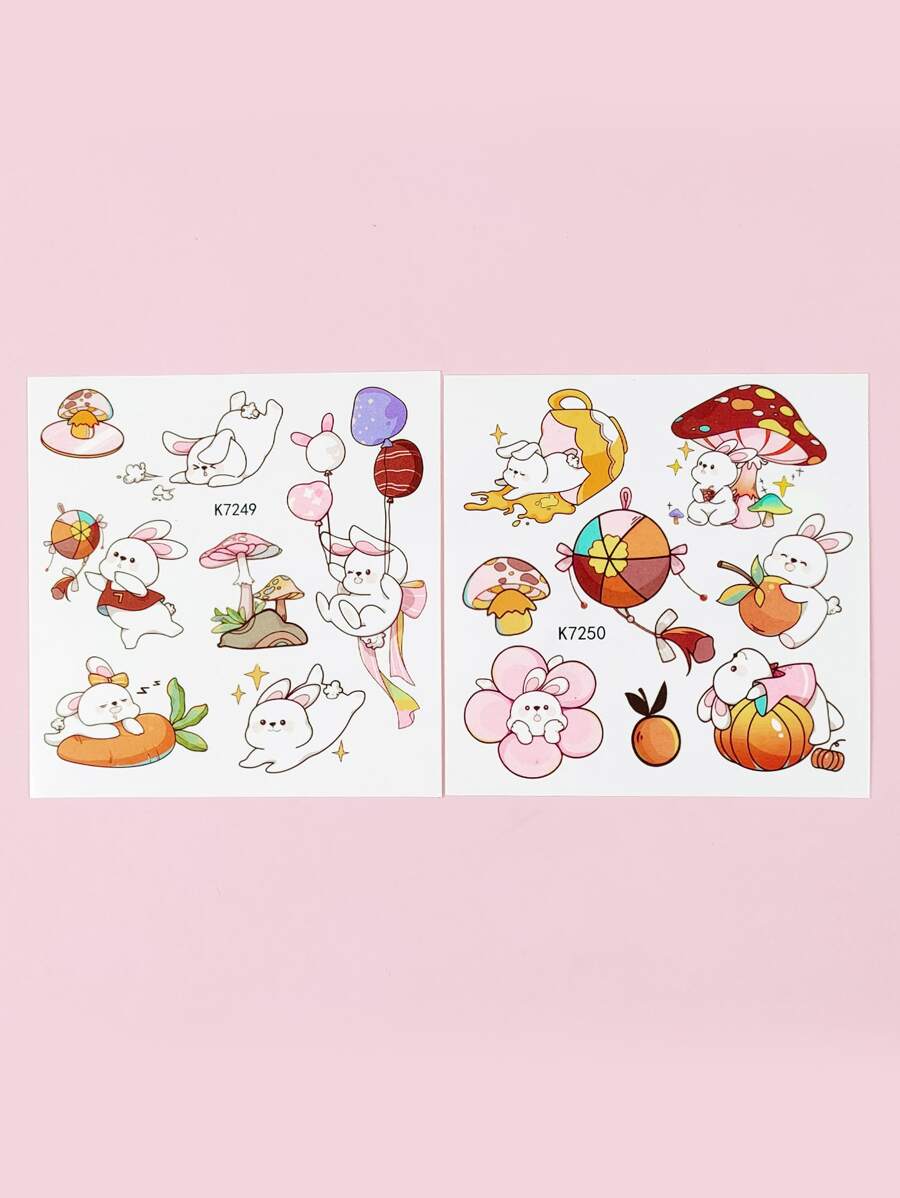 2 piezas Pegatina tatuaje con dibujos animados con patrón de conejo