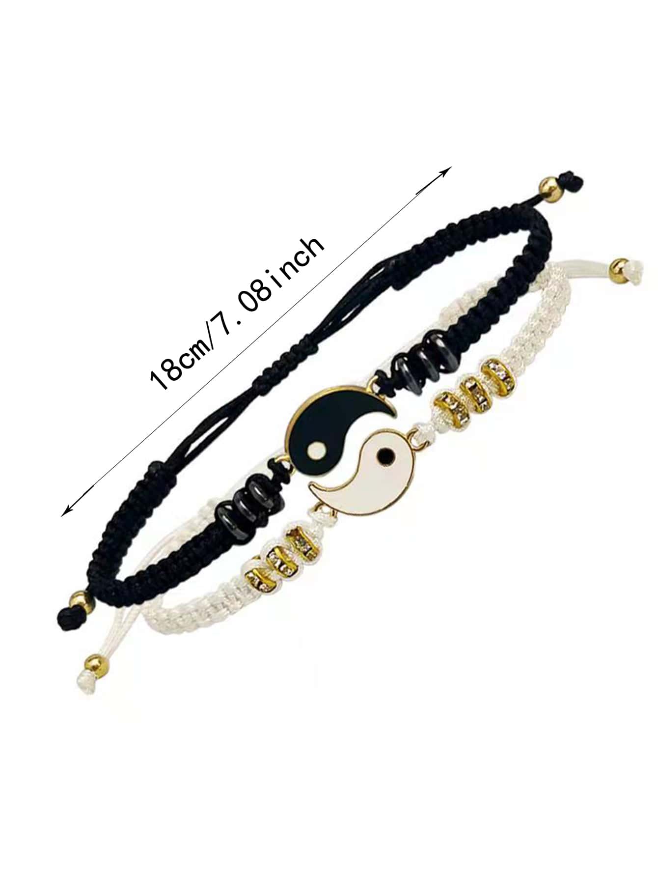 2 piezas Pulsera trenzada pareja con diseño de Yin y Yang