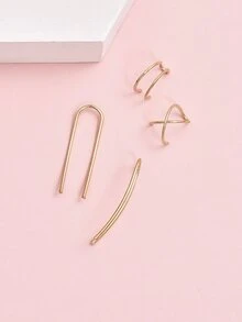 2 piezas Cuff de oreja minimalista & 2 piezas Pendientes