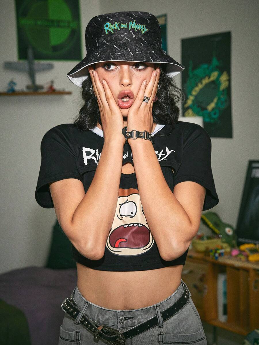 Rick and Morty | ROMWE 2 sombreros de pescador con gráfico de dibujos animados y letras para mujer