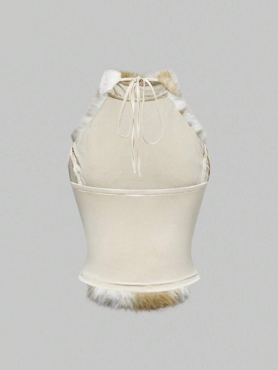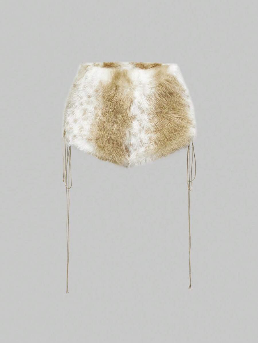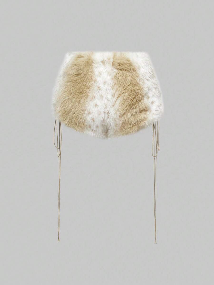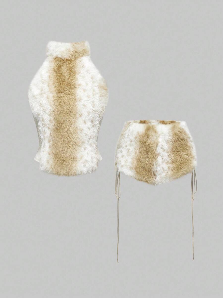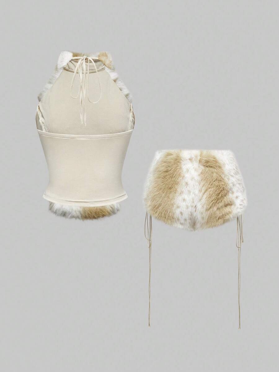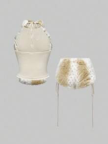 Hippie Set de 2 piezas de top corto y shorts de cintura baja con peluche en estilo retro Y2K para mujer, otoño/invierno