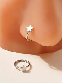 2 piezas/set Anillo de nariz con decoración de estrella, regalo de joyería de cuerpo de Piercing Popular de acero inoxidable para mujeres y hombres, joyería de acero inoxidable