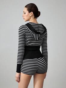 Fairycore Set de 2 piezas de sudadera y pantalones cortos a rayas de corte slim casual