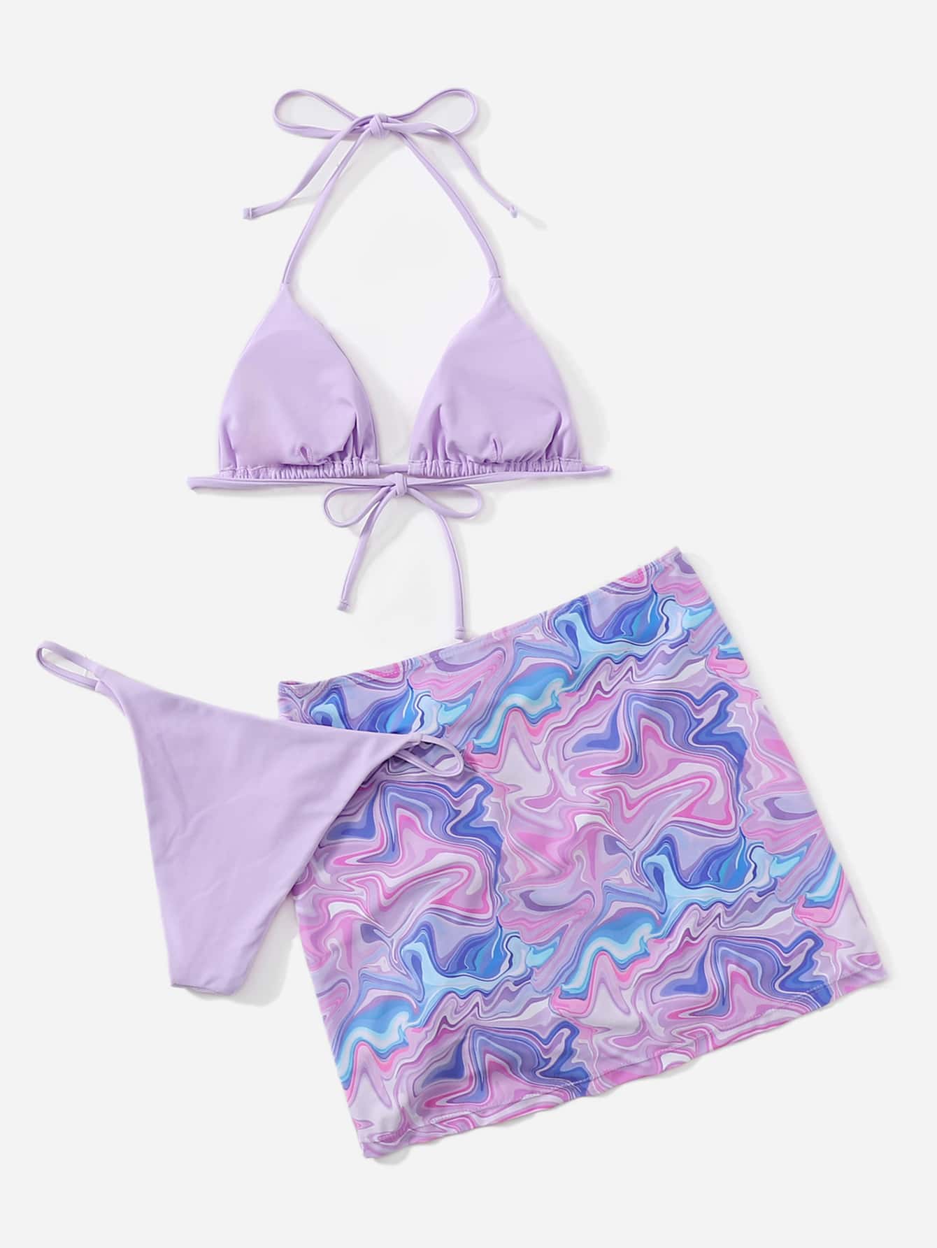 3 Paquetes De Bikini Estampado Con Falda De Playa