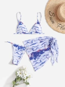 Bikini gráfico en 3 paquetes con falda de playa