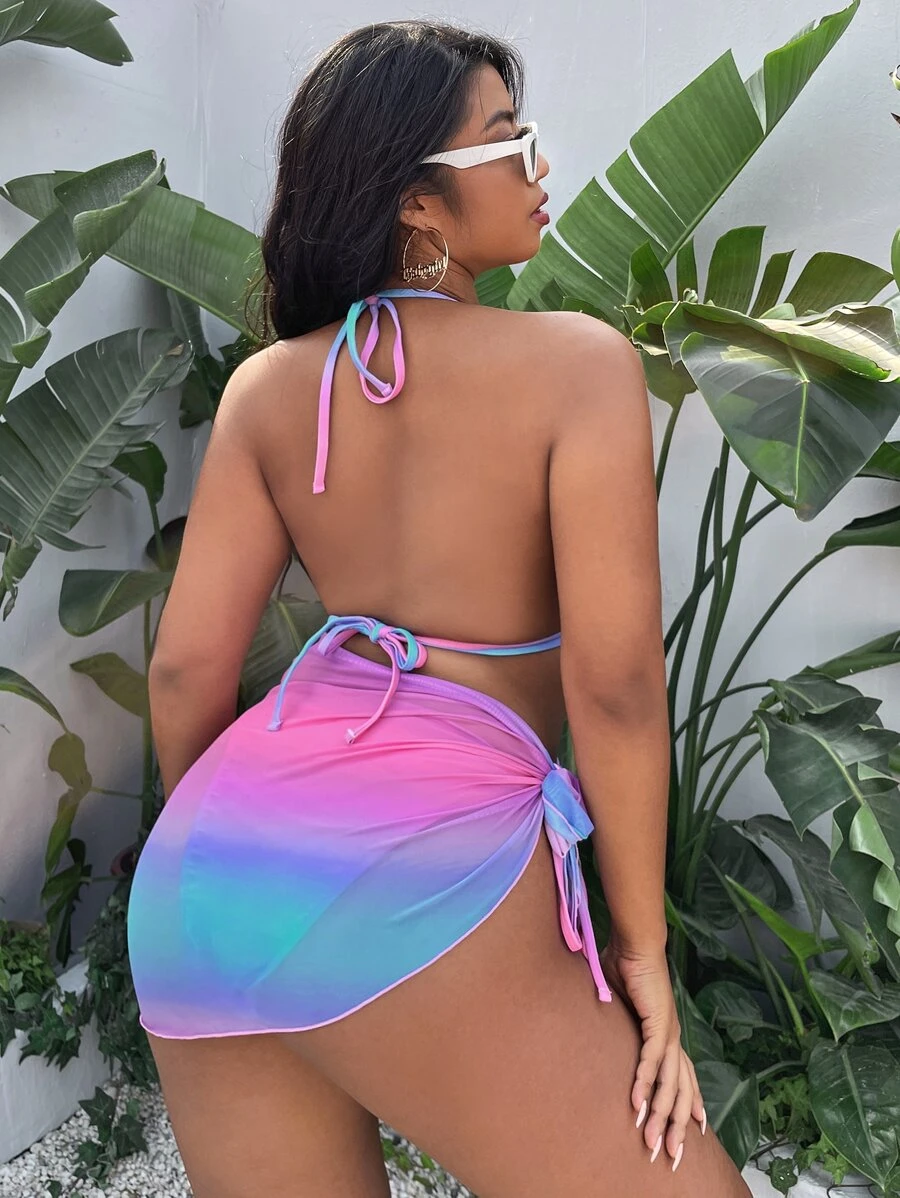 3 paquetes Conjunto de bikini triángulo degradado talla grande y falda de playa, verano playa