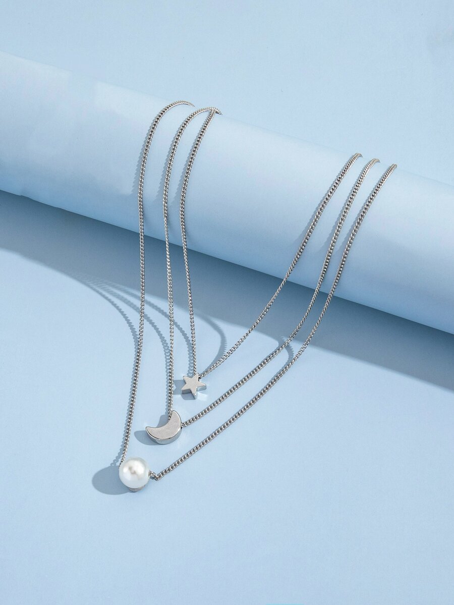 Collar con dije de luna y estrella de 3 piezas