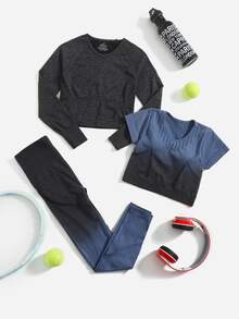 3 piezas Conjunto Camiseta deportiva sin costuras & Leggings deportivos