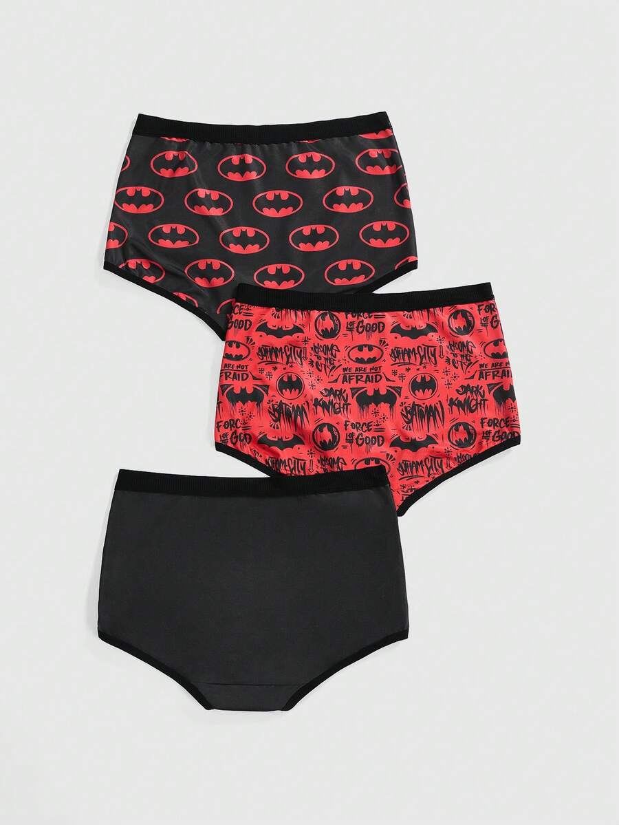 Batman X ROMWE 3 piezas de pantalones cortos tipo boyshort suaves y cómodos con estampado de murciélago