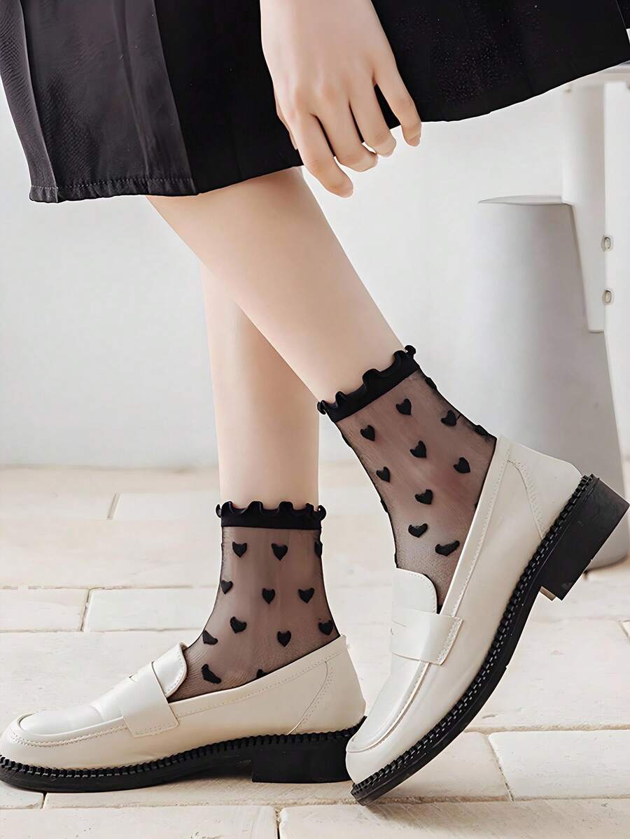 Kawaii 4 pares de calcetines medianos aleatorios con patrón de rayas y cristales, calcetines de encaje de unicolor negro/blanco, calcetines versátiles de estilo escolar JK para mujeres