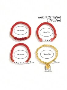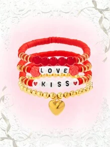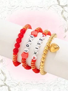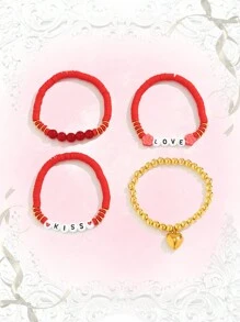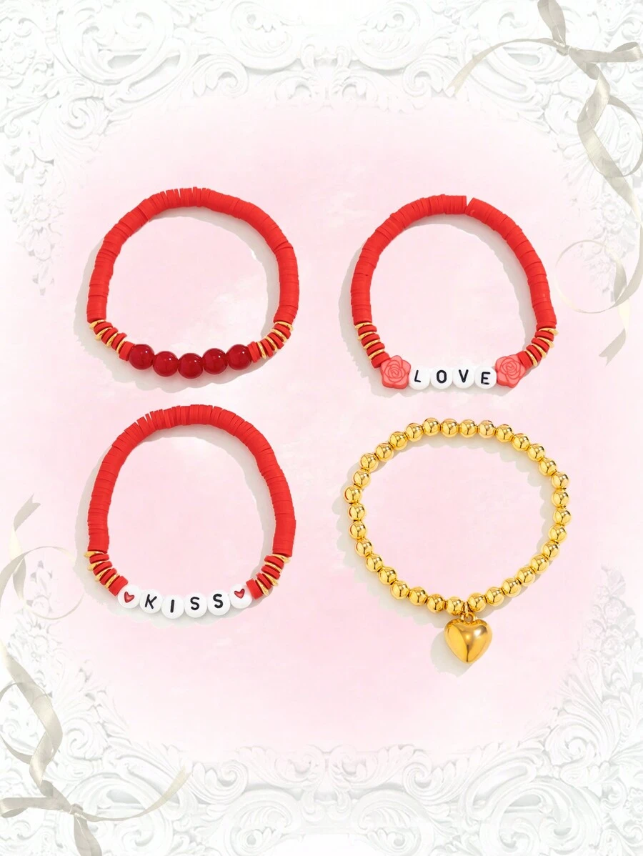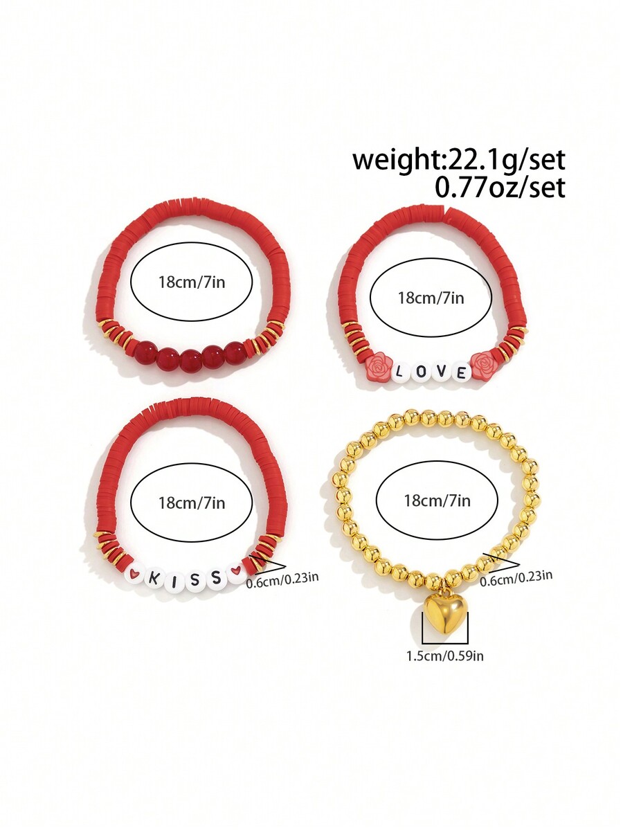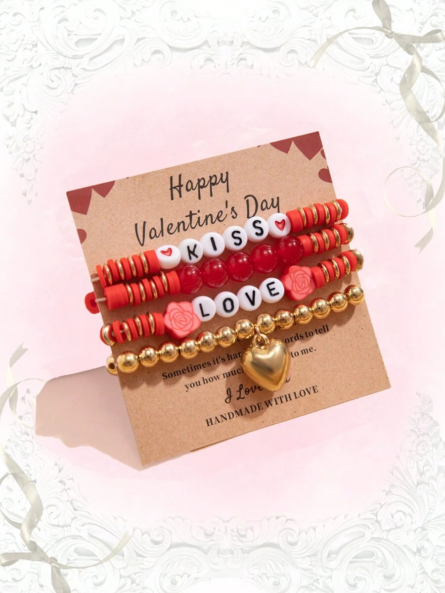 Kawaii 4 Piezas Conjunto De Pulseras Con Cuentas De Corazón Y Letra Lindo Y Dulce Con Colgante Para Mujeres, Regalo Del Día De San Valentín (pulsera + Tarjeta)